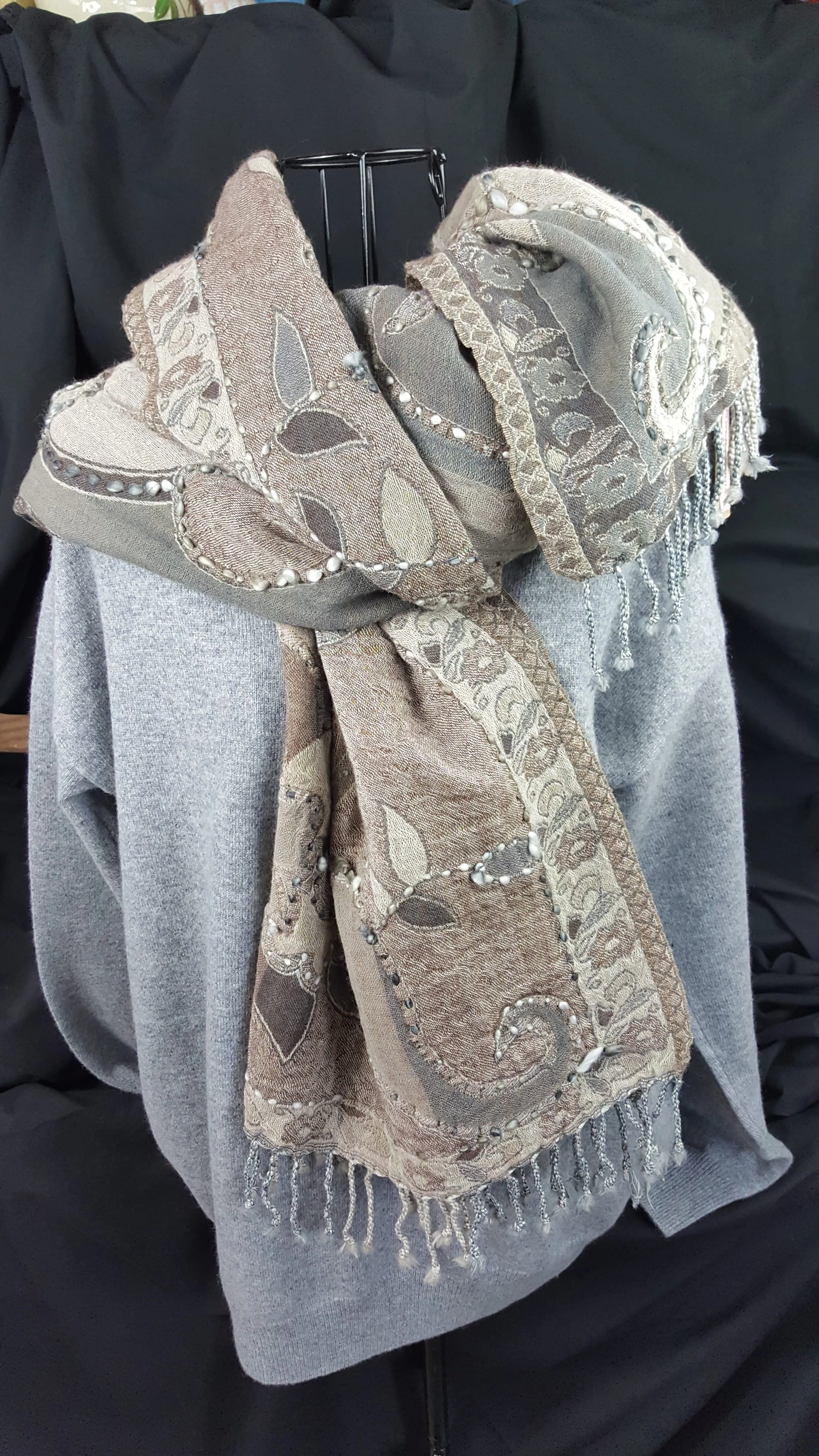 Shop Categories: All Scarves Clothing Jewelry Pillows All | Scarves | Clothing | Jewelry | Pillows | Handmade Silk Kantha Scarf: Eco-Friendly Orange Gold Textile $70.00 Handstitched Cashmere Wool Shawl: Gray Paisley Floral Embroidery $150.00 Handmade Ikat Cotton-Silk Coat: Blue & White Uzbek Kaftan $120.00 Handmade Ikat Cotton Kaftan Coat: Red Beige Geometric Duster with Pockets $120.00 Handmade Ikat Cotton Kaftan Coat: Purple & White Open Front $120.00 Handmade Ikat Cotton Silk Coat: Blue Boho Open Front Kaftan $150.00 Handmade Ikat Cotton Silk Kaftan Coat: Artisan Uzbek Boho Duster $150.00 Natural Watermelon Quartz Gemstone Necklace With Turquoise Heishi Beads Handcrafted In The USA $80.00 Vintage Gold & Pink Crystal Stud Earrings by Iconic Designer of New York, Kenneth Jay Lane $150.00 Kenneth Jay Lane Vintage Gold Hoop Earrings, Iconic 1960s Designer Statement, Clear Amber Crystal Hoops $150.00 Handcrafted Necklace Showcasing Peach Coral Nuggets, Red Coral, And Lapis Beads; Authentic Natural Gemstones in Earthy Tones And Textures $158.00 Decorative Tapestry Rectangular Throw Pillow - Lakeside Campsite - Home Is Where You Hook Up RV Camper $140.00 Retro Pinup Decorative Throw Pillow With Tropical Vintage Style $220.00 French Country Rooster Tapestry Pillow Great With Vintage Farmhouse Decor, Red Corded Accents Make The Cushion Standout, Handmade In The USA $240.00 Madras Striped Silk Throw Pillow Featuring Black, Turquoise, Gold, And Fuchsia Pink With Tassel Trim, Handmade In The USA $160.00 Children’s Throw Pillow With Fringe Tassel Accent For Boys Nursery Bedroom Featuring An Animal Marching Band With A Whimsical Elephant, Rabbit, And Puppy $210.00 20" Handcrafted Statement Necklace Showcasing Authentic Fresh Water, Baroque Natural Pearls and Turquoise Heishi Beads, Handmade In The USA $100.00