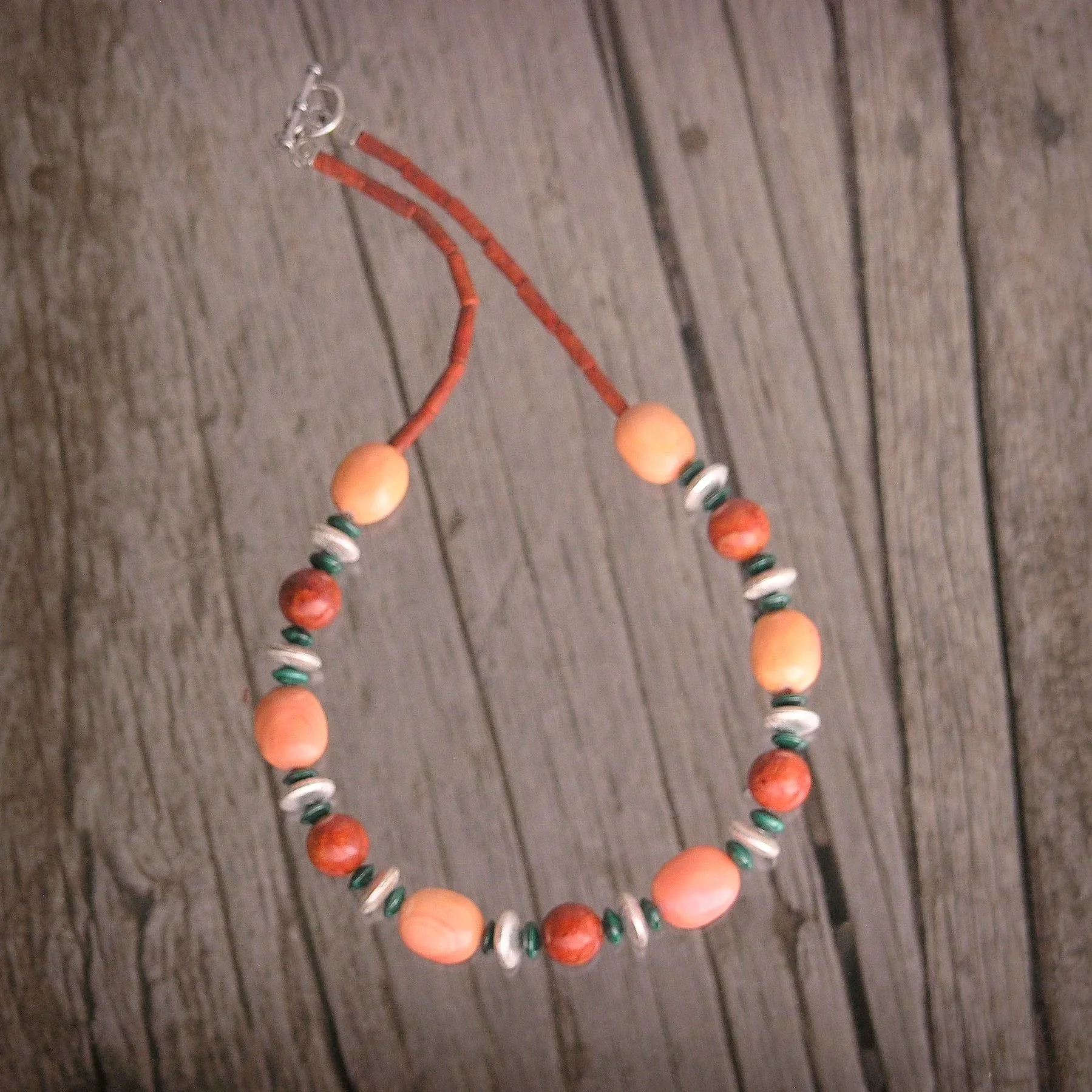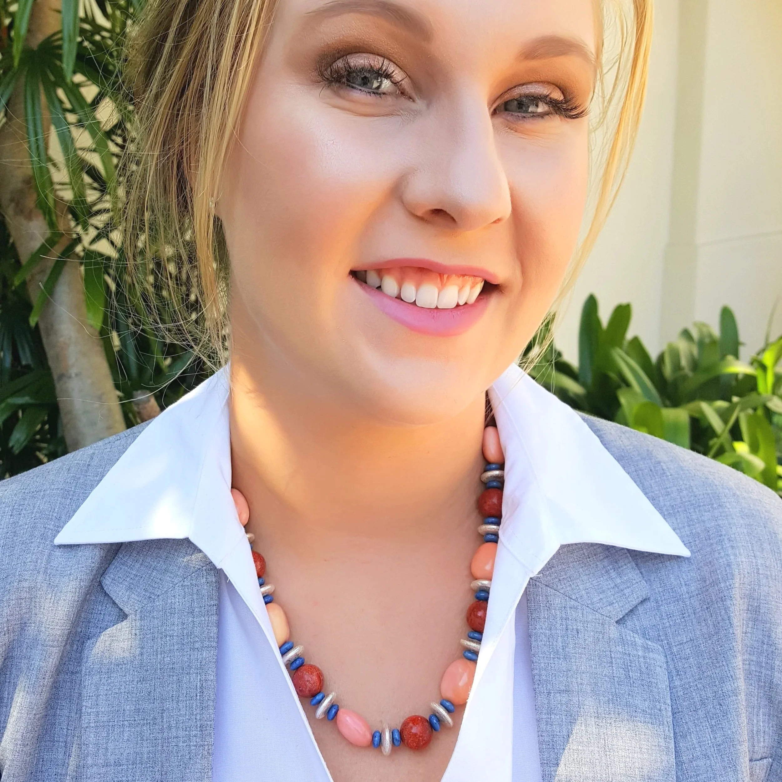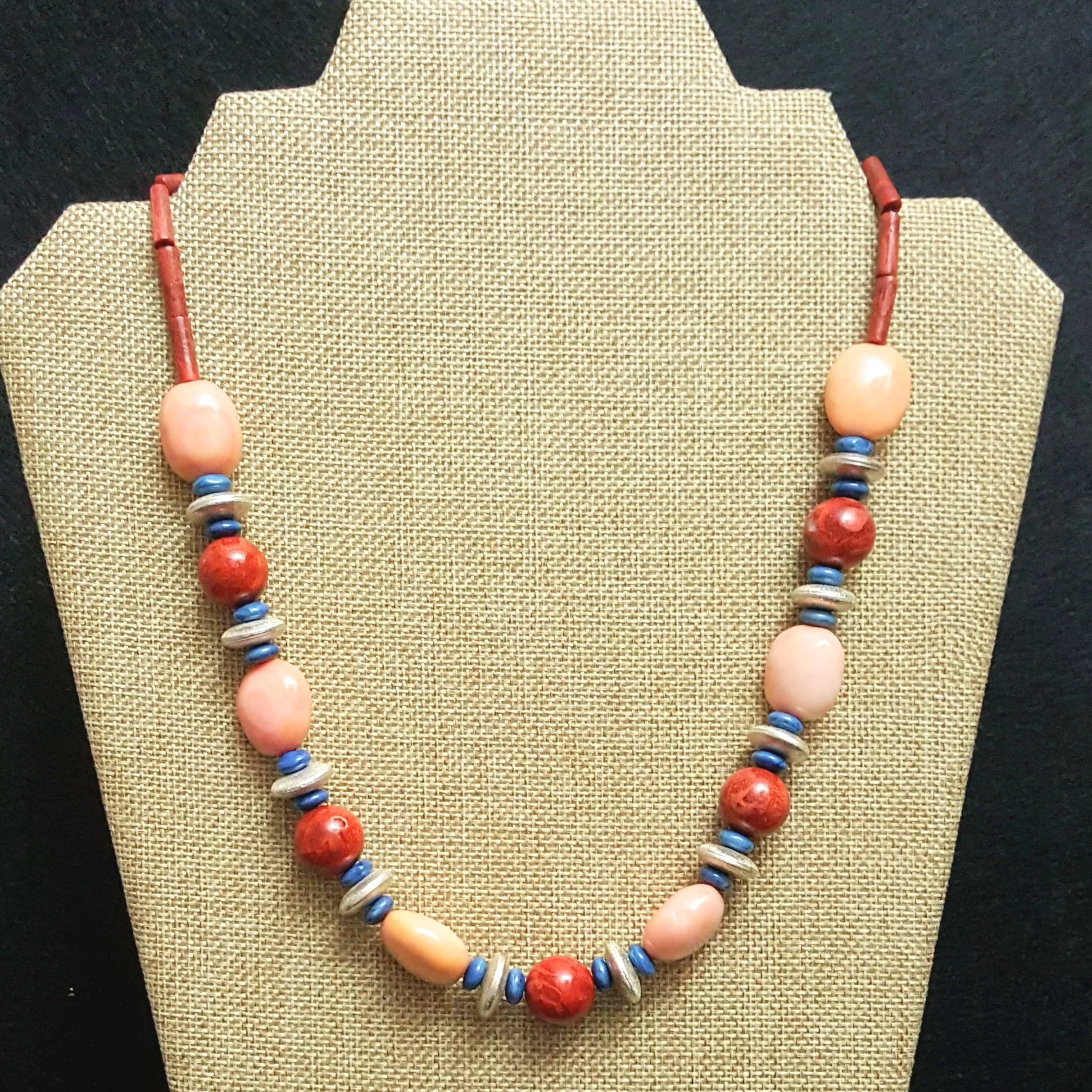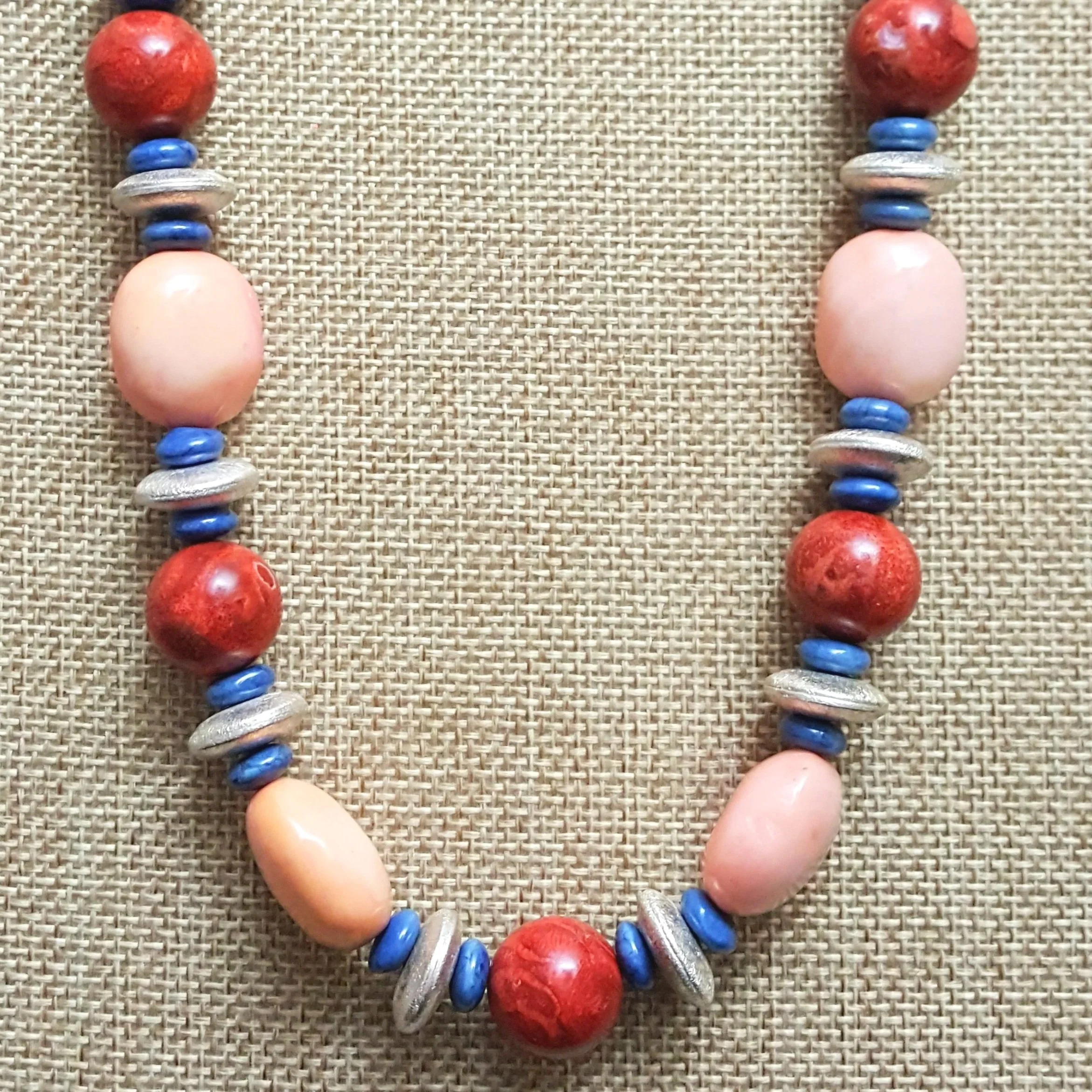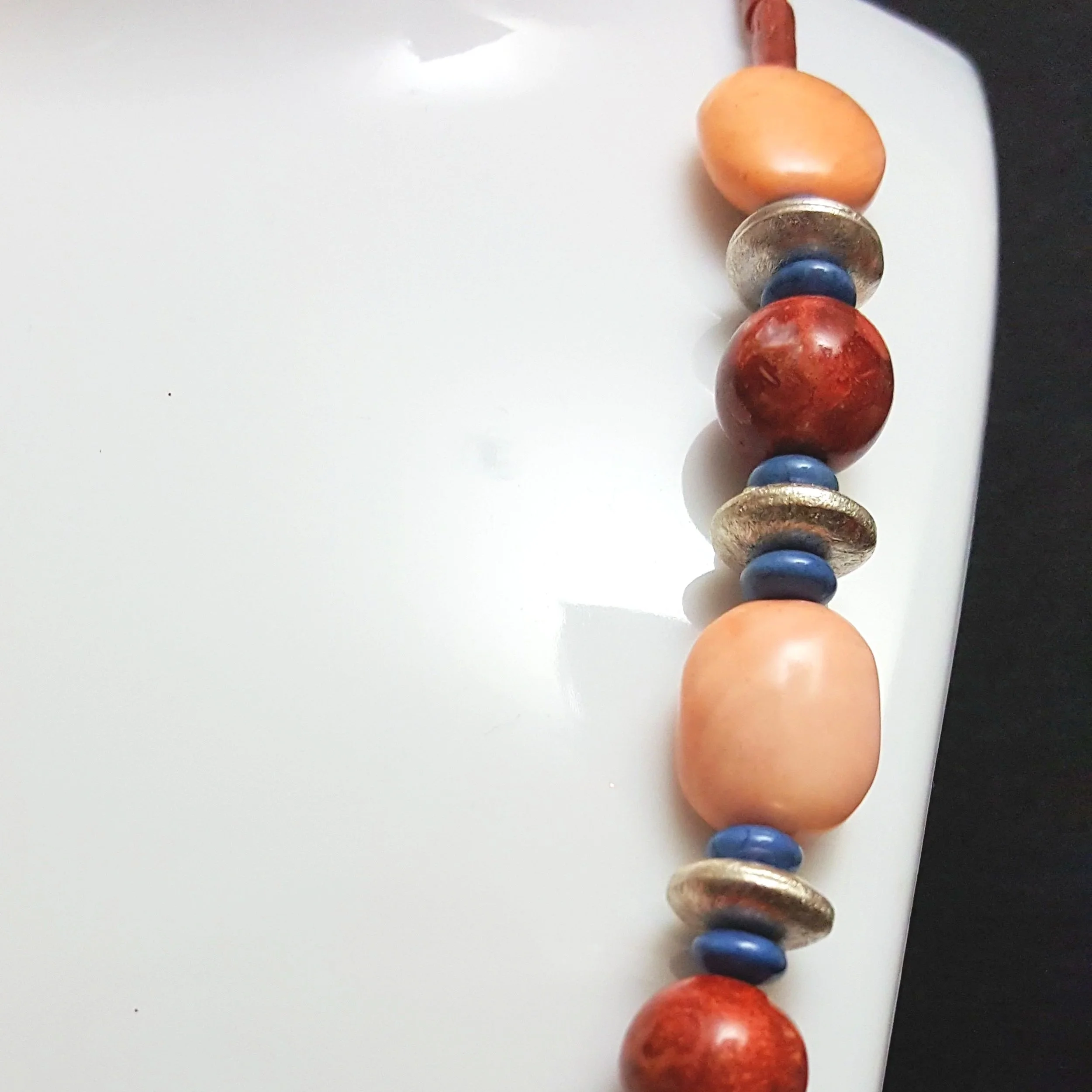 Bold & Natural Beauty: Peach Coral, Lapis, & Red Coral Necklace