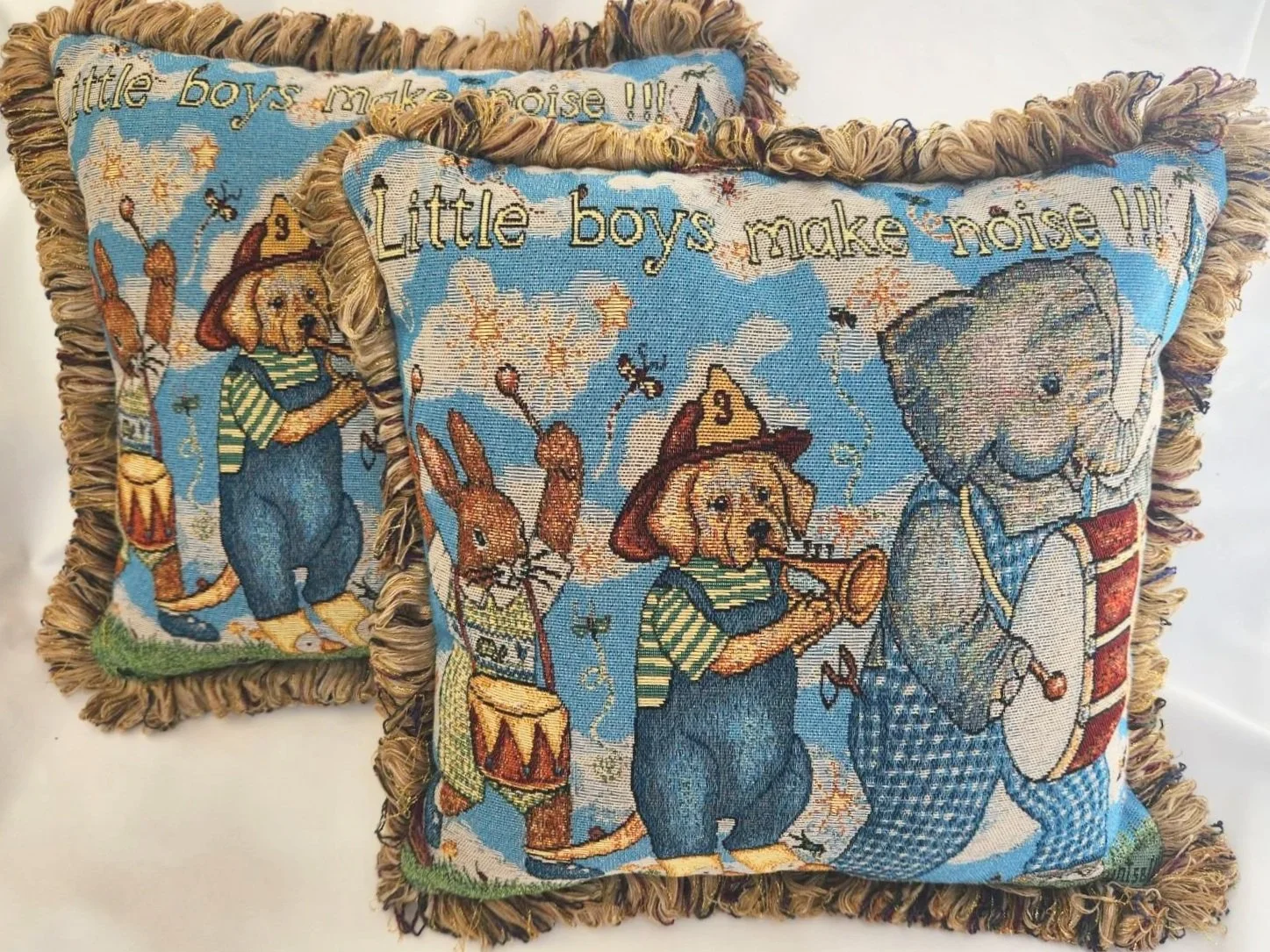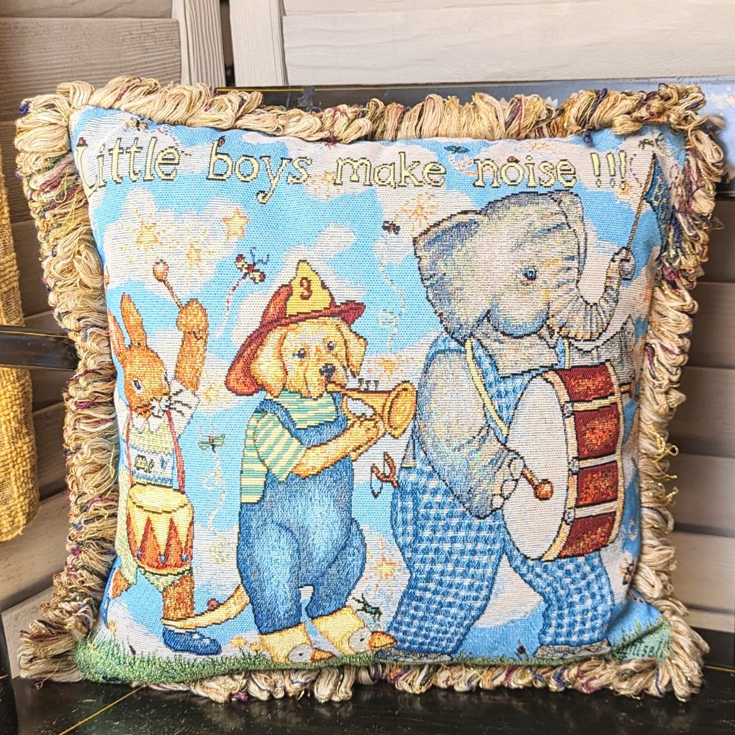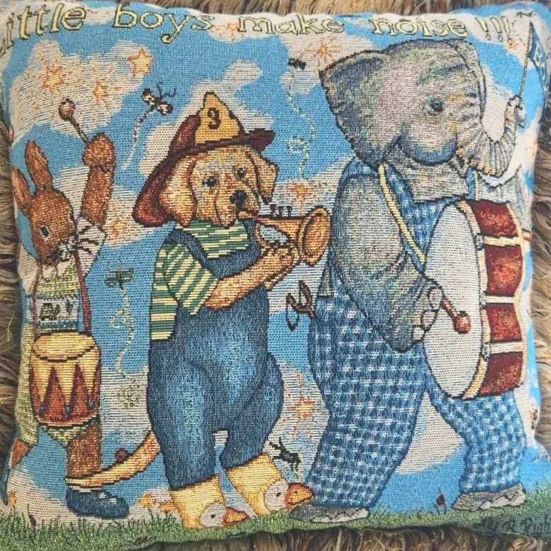 Invite the magic of dancing animals into your home with this delightful, one-of-a-kind pillow.